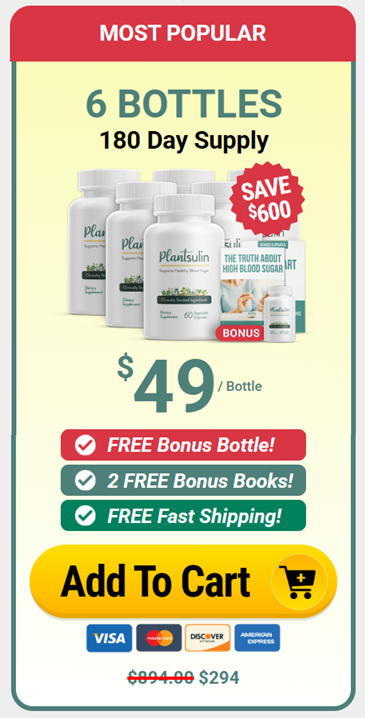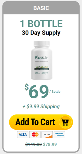 Claim Your Discounted Plantsulin Below While Supplies Last BASIC 1 BOTTLE 30 Day Supply 69 / Bottle + $9.99 Shipping Add To Cart $149.00 $78.99 MOST POPULAR 6 BOTTLES 180 Day SupplySAVE